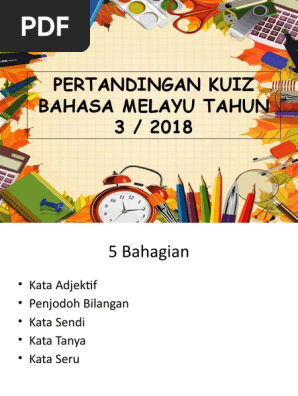 BAHASA MELAYU TAHUN 3 DRAFT. Kuiz Online pendidikan ini dikhususkan kepada murid sekolah rendah dari tahun 1 hingga tahun 6. Produk pembelajaran digital yang merangkumi bahan pembelajaran dan pengajaran bagi Tahun 1 hingga Tingkatan 5 yang.