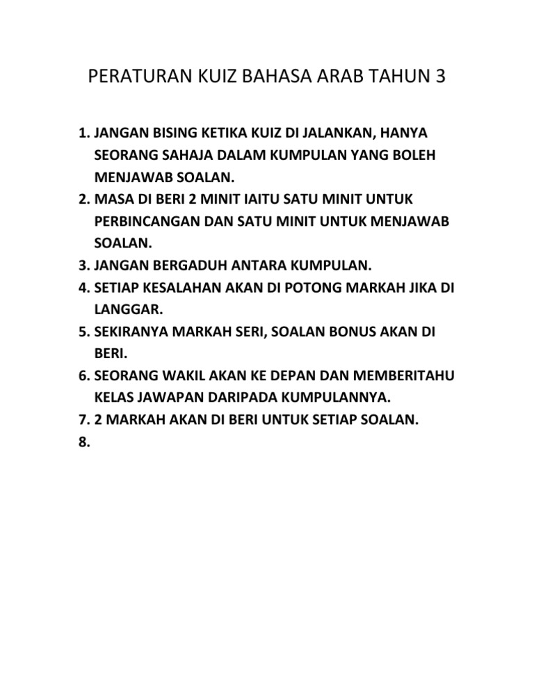 Peraturan Kuiz Bahasa Arab Tahun 3 Pdf